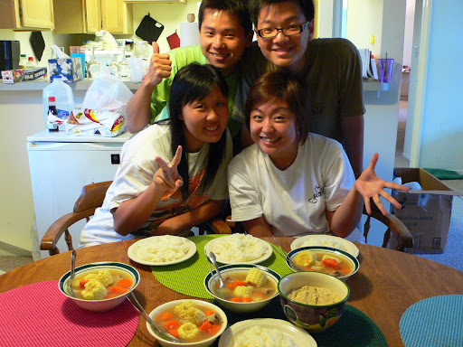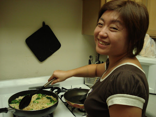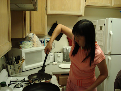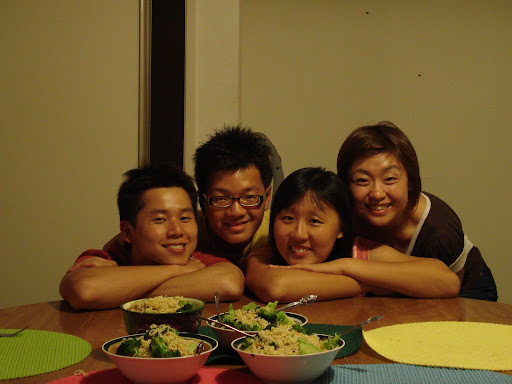 As we settled down well in our apartment, we started more cooking sessions. Great that me and frances know cooking .. haha .. the 2 lucky guys, no need to miss so much of singapore food .. and we 2 lucky gals, get to cook and no need wash dish .. haha .. 一举两得。Fried rice with orange juice. I cooked the rice the day before and store the rice in the fridge. Talking bout rice, we bought a Rice Cooker that cost around USD15
