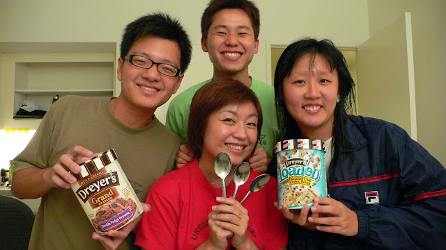 And we sometimes had ice-cream fest for dessert =P .. ice-cream soooo cheap there .. so 对不起 ourselves if never buy more and eat .. hahaha .. So always end up our freezer flooding with ice-cream tubs .. lol and I most probably gain most of my weight from ice-cream eating there in usa ..