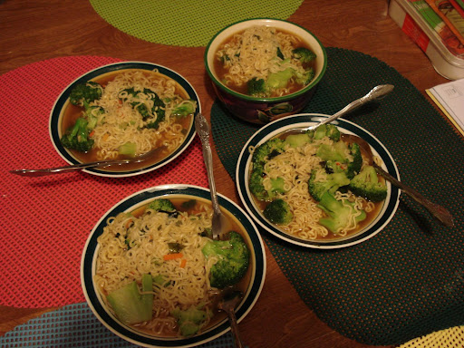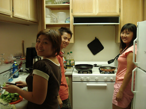 The day's dinner was a simple meal as we're quite tired travelling fr NY and walking around in Westwood and settling down in apartment (gotta clean tables, cupboards, line out bedsheet, decorate study table etc). So we cooked our 1st meal of maggie noodle in our apartment's kitchen. Must really thank our landlord. She left all her utensils, fridge, pots, pans, knife etc etc for us to use. Without these, we had to spend more $$ buying them or not cooking and eating out.