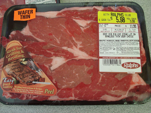 As Ralphs supermarket opens 24hr, we made a trip there late at night since we had car, and also to test out our new GPS system. Finally bought steak which according to frances, its so much cheaper than singapore. I didnt know that cos I didnt buy any before in singapore as steak can't enter my house due to religion issue. We bought a total of 4 slices though Fred can't eat, but steak comes in tray of 2 .. so we had 1 more slice to divide among the 3 of us .. hahah .. got some marinated chicken meat for Fred.
