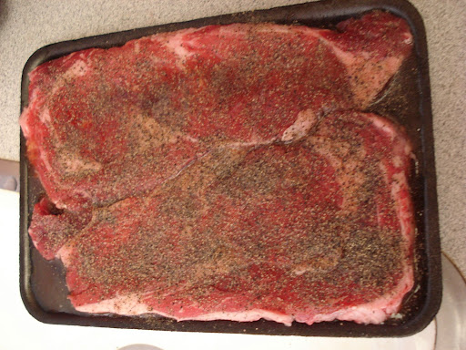 The marinated beef steak thats gonna be marinated overnight .. I had specially went over to frances house before we came USA where both of us learn how to cook steak.